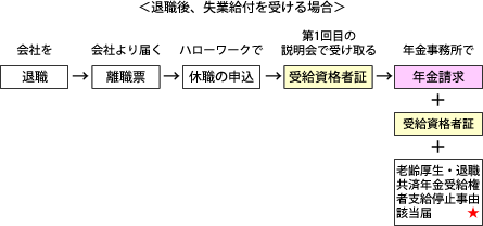 65歳前の特別支給の老齢厚生年金(報酬比例部分)と基本手当は併給されません。基本手当を受給中は年金が停止されます。基本手当の受給が終われば年金が支給されます。その手続きを自動的にするために受給資格者証と書類★を、年金請求書と共に年金事務所などに提出します。